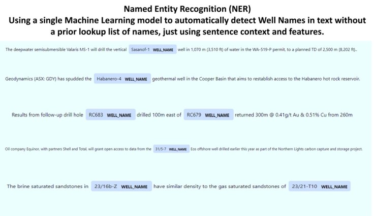 Detecting entities such as well names in unstructured text can be useful for many aspects of information discovery.