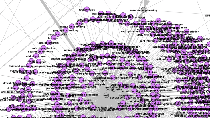 Information visualisation of the reference knowledge graph used by the GeoClassifier(R) algorithm to automatically classify subsurface documents to detailed document type level.